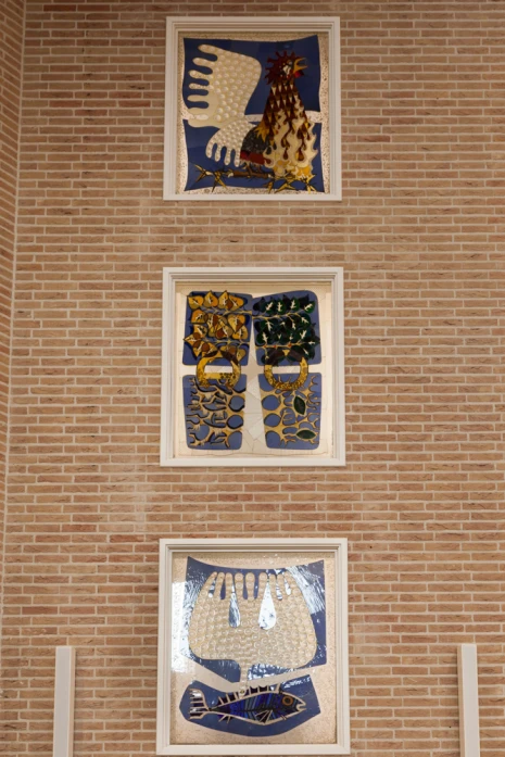 Rechts naast de kansel, vanuit het liturgisch centrum gezien, is een drietal glas-in-lood ramen geplaatst. Deze ramen zijn in 1978 geschonken door de architect en de aannemer bij de oplevering van het kerkgebouw.